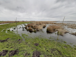 Het gebied is uitgestrekt en mooi maar weinig afwisselend. Ik vind het wat saai worden en voel dat mijn energie sneller afneemt dan zaterdag. Via het wildrooster verlaat ik 't Roegwold.
